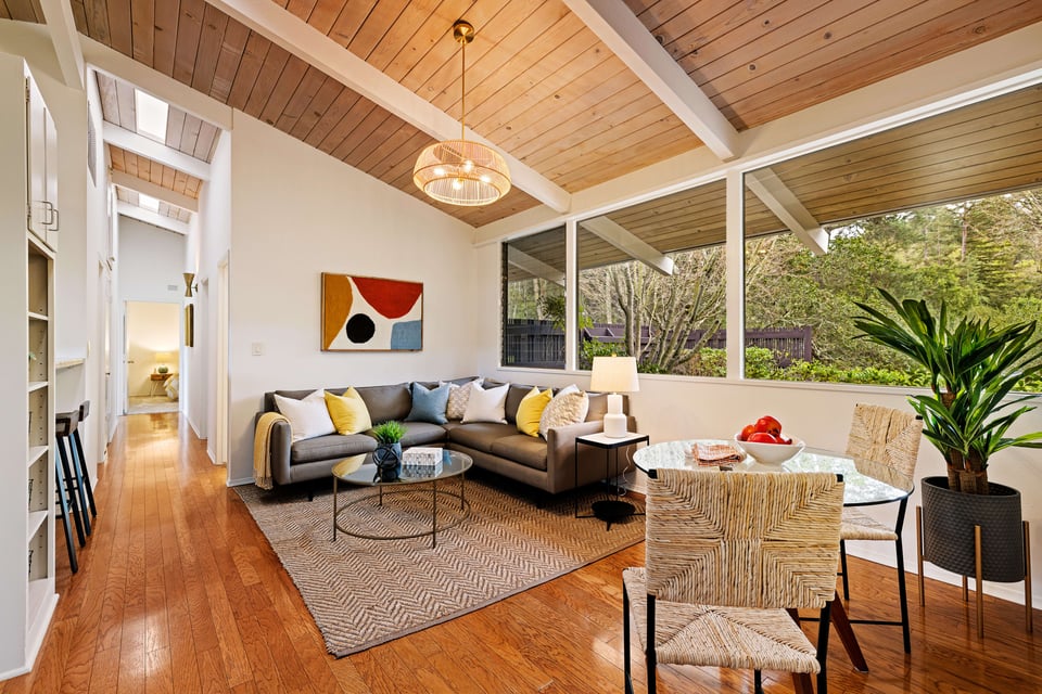 Nestled blocks from downtown Orinda, you’ll find this tranquil 1,665 +/- square foot private oasis with glorious views. The home boasts walls of windows that seamlessly blend the indoors with the outdoors, an abundance of natural light, and stunning vaulted wood beamed ceilings throughout highlighted with numerous skylights. Step outside to discover a delightful backyard complete with patio, lush lawn area, and multiple additional yard spaces, presenting endless possibilities. This property effortlessly combines beauty, convenience, and an enviable location, making it a truly special find.